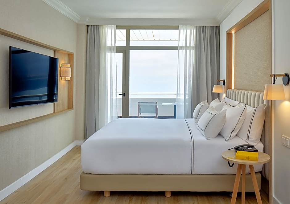 This elegant air-conditioned room features a furnished balcony and has views of the sea. There is a flat-screen TV with satellite channels, free WiFi and a bathroom with a rain shower, hairdryer and a make-up mirror. A double bed is available on request.